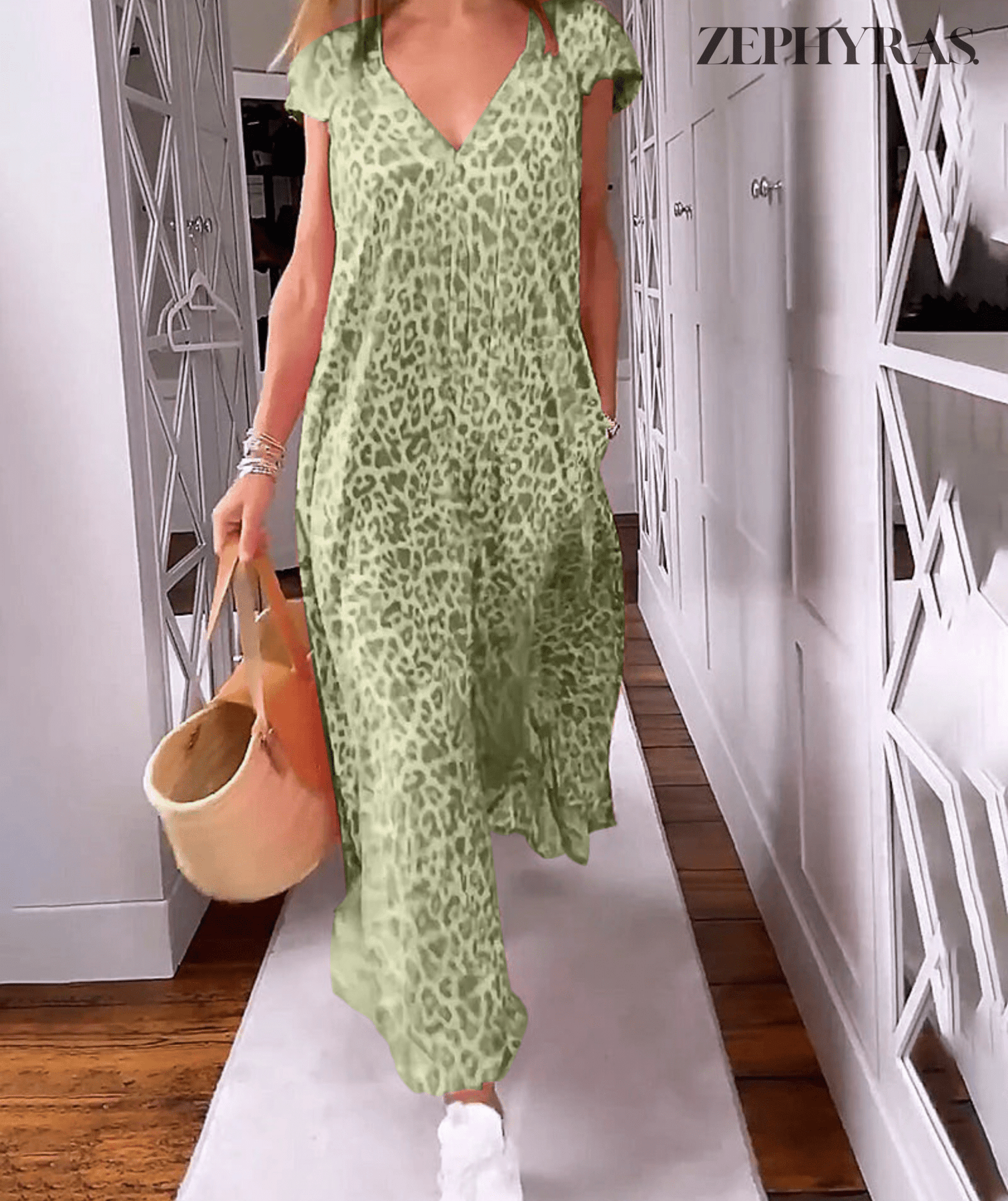 Discover the perfect blend of style and comfort with the Zephyras V-Neck Summer Dress. This maxi dress is the ultimate wardrobe essential for any sunny day or summer occasion, offering breathable comfort and a touch of sophistication. With its flattering V-neckline and timeless print, it radiates elegance, while the relaxed fit allows you the freedom to enjoy your day in style. The Zephyras is your go-to dress, whether you're strolling through a sunny afternoon or enjoying a chic evening out.